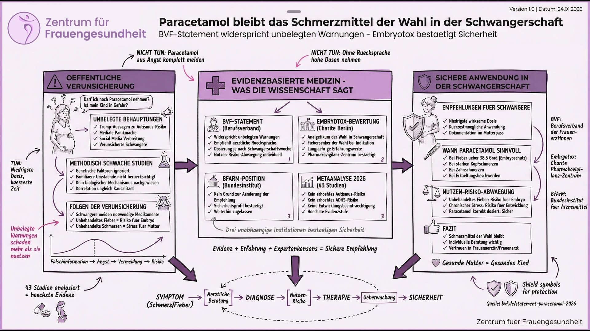 In letzter Zeit wurden Schwangere durch Berichte über mögliche Risiken von Paracetamol verunsichert. Doch: Paracetamol bleibt laut aktuellem BVF‑Statement das Schmerzmittel der Wahl in der Schwangerschaft, sofern es korrekt angewendet wird.